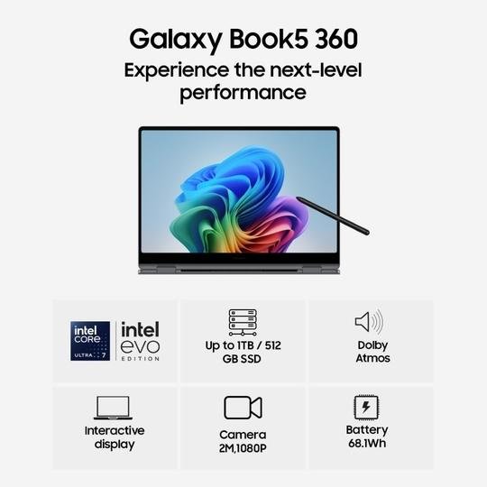 Samsung Galaxy Book5 360 NP750QHA-LG1IN Notebook Laptop (Intel Core Ultra 5/16 GB/512 GB SSD/Intel Arc Graphics/Windows 11 Home/MSOffice/AMOLED ), 39.62 cm – 15.6 inch, Grey