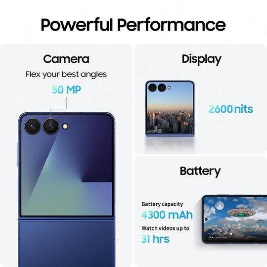 Samsung Galaxy Z Flip7 5G 256 GB, 12 GB RAM, Blue Shadow, Mobile Phone