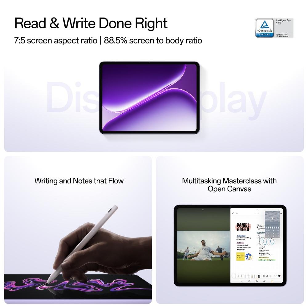 Stylus Compatible: Supports OnePlus Pad Go 2 Stylo (sold separately) — smooth ink input and productivity enhancements with up to 4,096 pressure levels (via accessory).